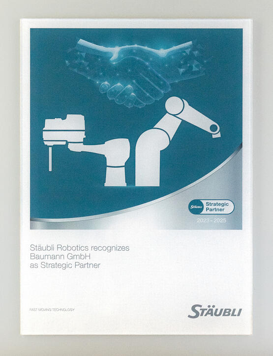 A highlight of the evening was the ceremonial honouring of Stäubli Robotics' outstanding partners. We are delighted that Baumann Automation is one of the honoured partners and received the coveted "Strategic Partner Award". The award was received by Stefan Wendl, our Business Development Manager. This award recognises Baumann Automation's excellent cooperation and commitment in the field of robotics and automation technology.